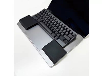 ●左右分離構造による高いレイアウト自由度左右分離構造により中央にスペースを確保でき、トラックパッドなどの小型デバイスを自然にレイアウトできます。また、HHKBをノートPC本体のキーボード上に載せて使用する“尊師スタイル”においても、タッチパッドに干渉せずに配置することが可能です。デスク環境や作業スタイルに応じて位置を柔軟に調整できるため、レイアウトの自由度が高まります。