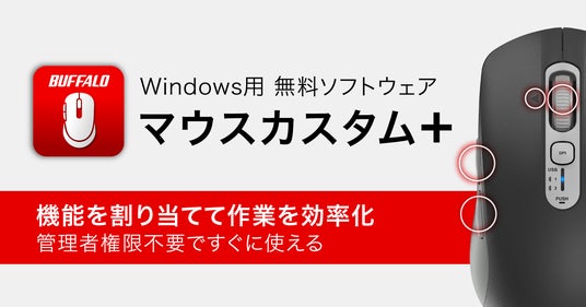 株式会社バッファロー(本社:東京都千代田区、代表取締役 社長執行役員CEO:牧 寛之、以下バッファロー)は、バッファロー製の5ボタンマウスにおいて、サイドボタンなどにお好みの機能やショートカットを割り当てることができる、管理者権限不要・ユーザー権限のみでインストール可能なWindows向け無料ソフトウェア「マウスカスタム+」の提供を開始しました。