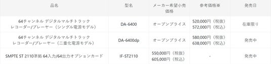 64チャンネル デジタルマルチトラックレコーダー/プレーヤー『DA-6400 / DA-6400dp』https://tascam.jp/jp/product/da-6400/
