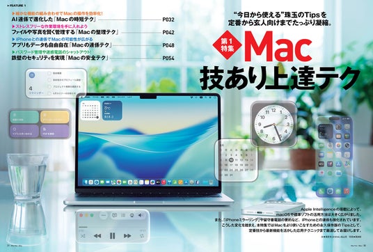 「Mac技あり上達テク」では、Macの時短テクやiPhoneとの連係テクなどのTipsを一挙大公開。また、「iPhone設定見直し総点検」では、なんとなく使い続けている設定を改めて見直し、より快適で安全にiPhoneを活用するための方法をまとめました。どちらもAppleファンだけでなく、この新生活で初めてApple製品を手に取る方にも永久保存版な特集となっています。