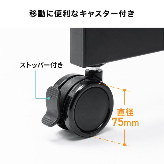 ストッパー付き75mmキャスターを4個搭載し、移動のしやすさと設置後の確実な固定を両立できます。