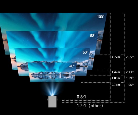 スクリーンから1.77mの距離で100インチ投影が可能