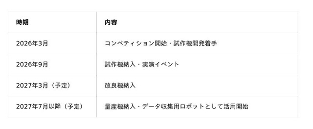 ※ 2026 年9月以降の改良期間および量産期間のスケジュールは、各期間への移行にあたり評価結果に基づくAIRoA の判定が行われるため、その結果次第で変更となる可能性があります