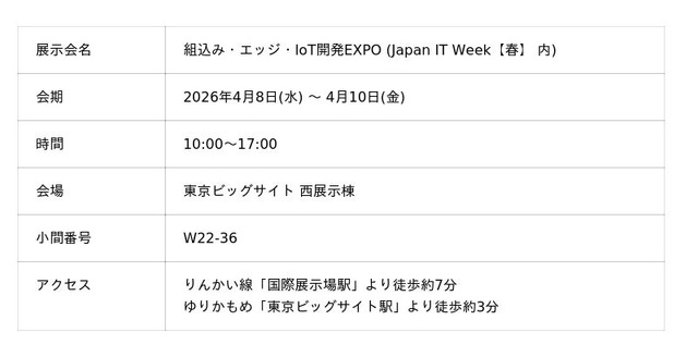 「組込み・エッジ・IoT 開発 EXPO (Japan IT Week【春】)」に出展いたします。