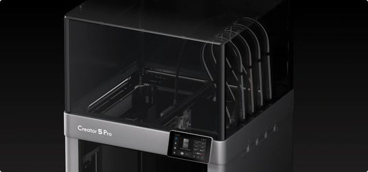 Creator5 Proは、最大4つの独立ツールヘッドを搭載したFDM方式3Dプリンター「Creator5」の性能に加え、エンクロージャー構造を採用したモデルです。