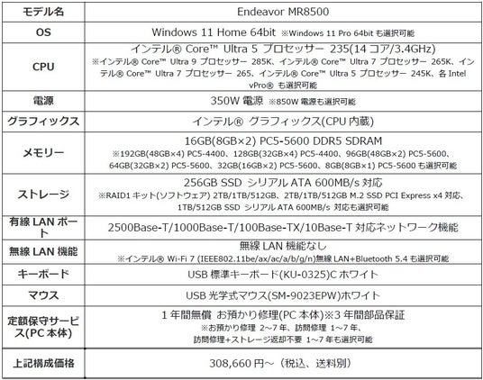 『Endeavor MR8500』の詳細は、ホームページでご確認ください。