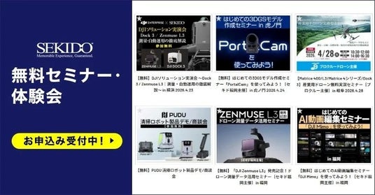 セキドでは、初心者向け体験会から業務活用セミナーまで、ドローンや関連ソリューションをご紹介する無料セミナーやイベントを定期的に開催しております。今後もオンラインや全国各地での開催を予定しておりますので、ご興味をお持ちの方はぜひご参加ください。
