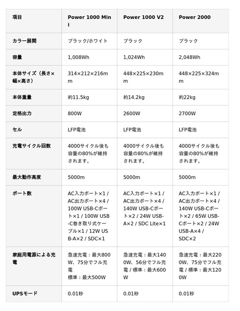 詳しくは、DJI Power 1000 Miniのレビュー記事を確認ください。