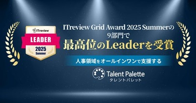 人事領域をオールインワンで支援する『タレントパレット』が、「ITreview Grid Award 2025 Summer」の9部門で最高位の「Leader」を受賞