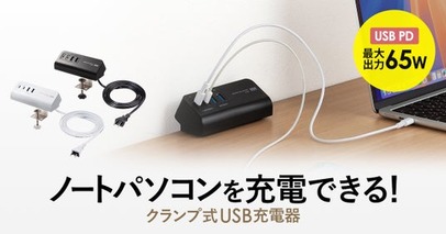 ノートパソコンを充電できるUSB PD最大出力65Wのクランプ式USB充電器を発売